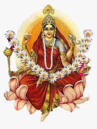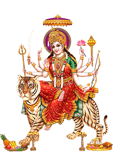 She is also known as Ma Ashtabhuji. She rides a lioness. Devotees worship her for health, wealth, and strength with red flowers.