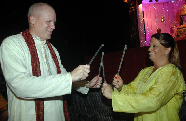 Both women and men dress up in traditional attires, jewellery, waist belts, etc. The Garba fever swipes across the length and breadth of the state, irrespective of age. People dance to the songs and bhajans of Mother Goddess and Lord Krishna in well-defined steps in unison which starts with slow beats and music, which gradually catches up to speed.