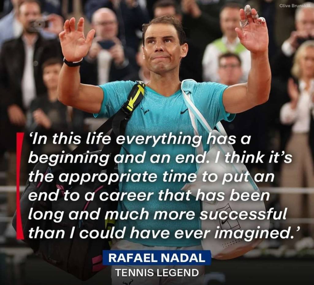 Rafael Nadal has inspired millions with his perseverance, teaching us all the importance of fighting for every point, every match, and every dream. His legacy will live on, not just in the record books, but in the hearts of those who have had the privilege of watching him play. Thank you, Rafael Nadal, for showing the world that true greatness lies not in how many times you win, but in how many times you rise after falling.