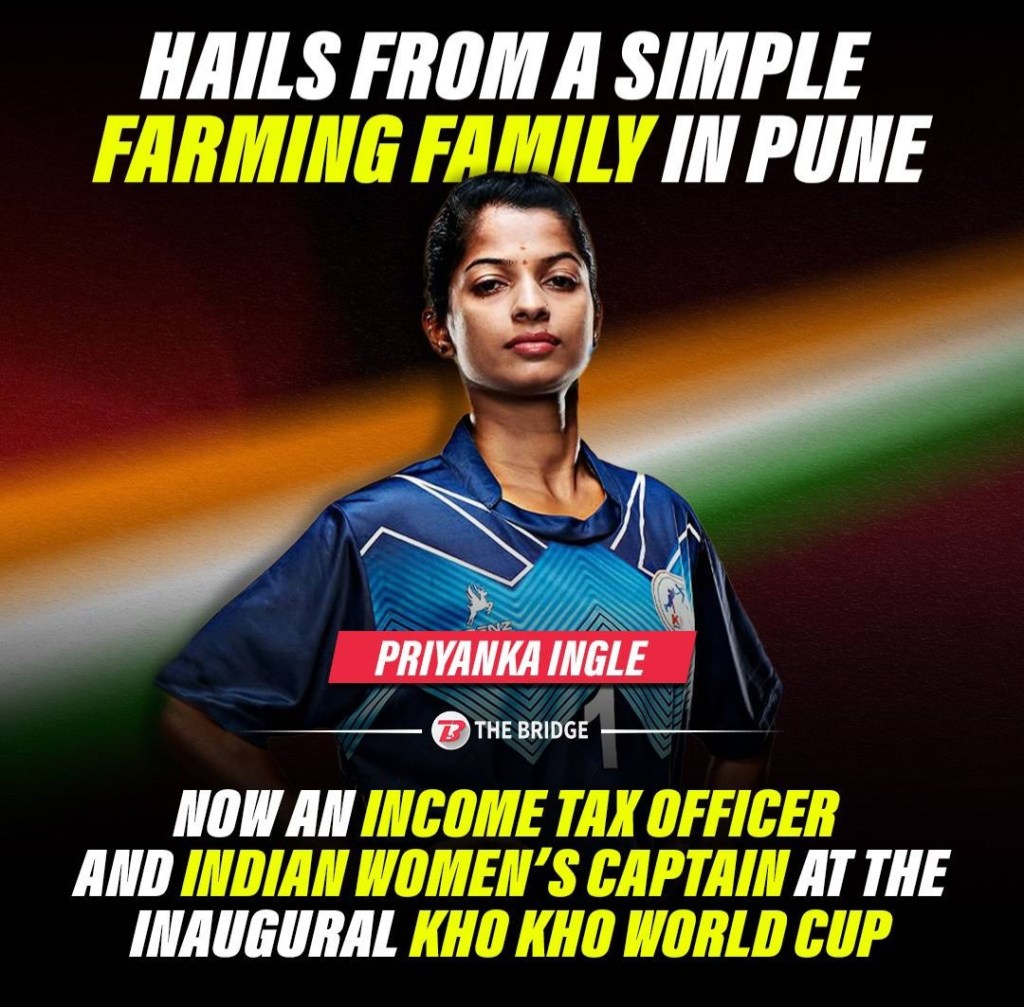 Priyanka Ingle, born in Pune, Maharashtra, to a humble farmer’s family, has emerged as one of India’s most inspiring athletes. Her journey is a testament to the power of perseverance, hard work, and the unwavering belief in one’s abilities. Priyanka has not only established herself as a skilled all-rounder in Kho Kho but has also made her mark as a dedicated Income Tax Officer in Mumbai, proving that dreams can be realised even in the face of challenges.