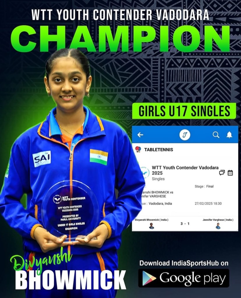 India’s clean sweep at the WTT Youth Contender Vadodara 2025 is a testament to the country’s strong grassroots development, coaching infrastructure, and rising pool of young talent. The performances of Ankur Bhattacharjee, Syndrela Das, Divyanshi Bhowmick, and others signal a bright future for Indian table tennis.