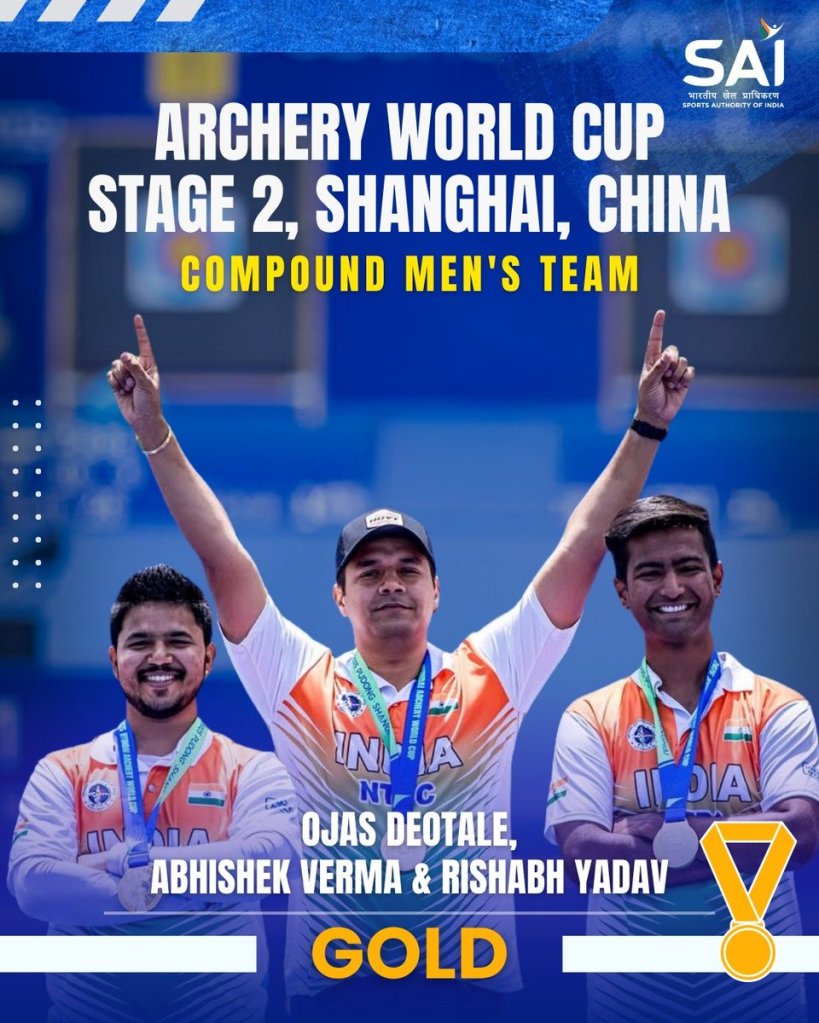 - Ojas Deotale, Abhishek Verma, Rishabh Yadav – Men’s Team Compound