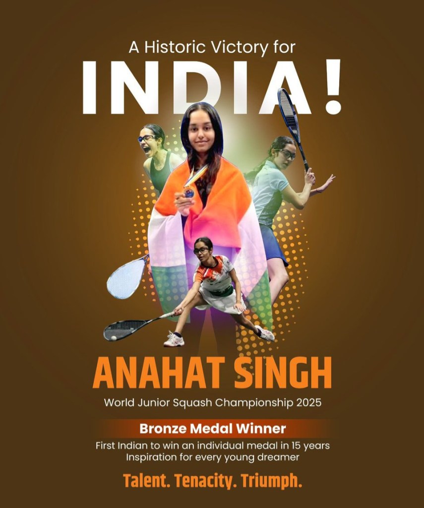 Anahat Singh’s bronze medal at the World Junior Squash Championships 2025 is not just a personal accolade, but a national celebration. In a sport long dominated by Egypt, her performance stands tall, reminding us that with persistence and passion, Indian athletes can challenge the very best.