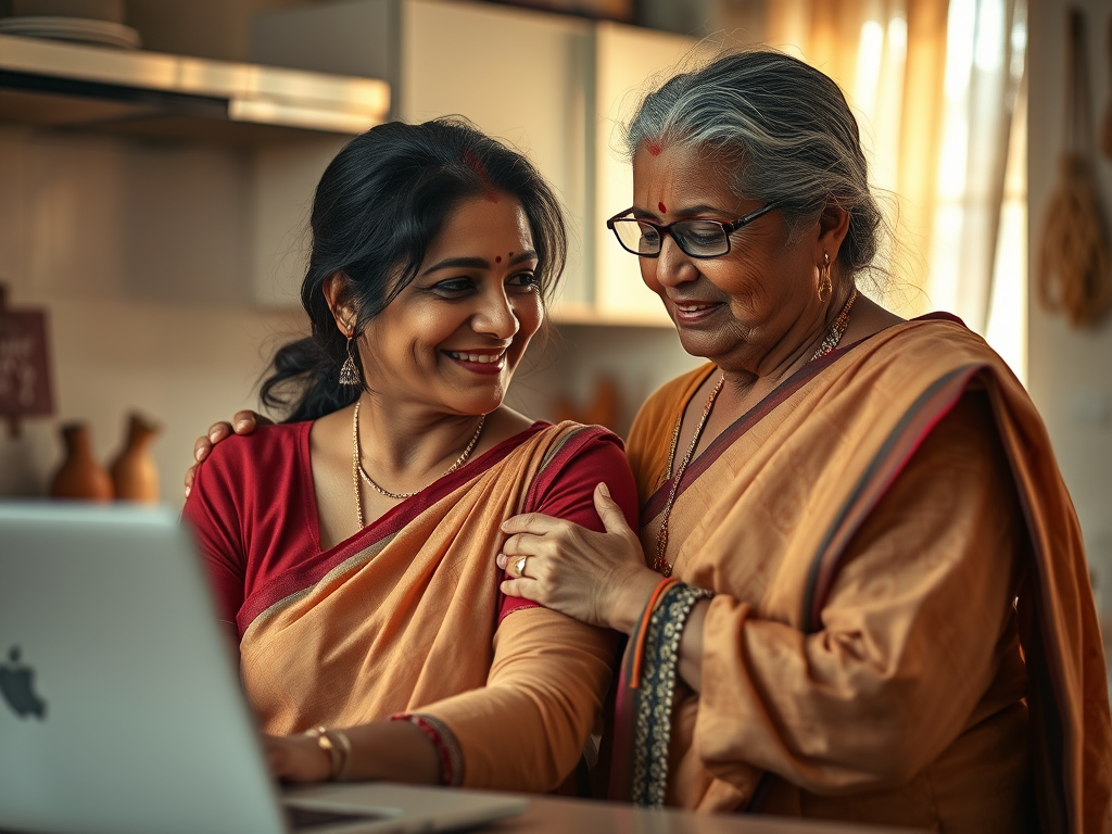 The next day, Manju Aaji greeted her with warmth and light in the morning. “Good morning, dear daughter,” she said with a beaming smile. Priyanka looked at her mother-in-law, who was seated with her laptop open, repeating some lines from the screen. “I am learning English,” she proudly declared to Priyanka.